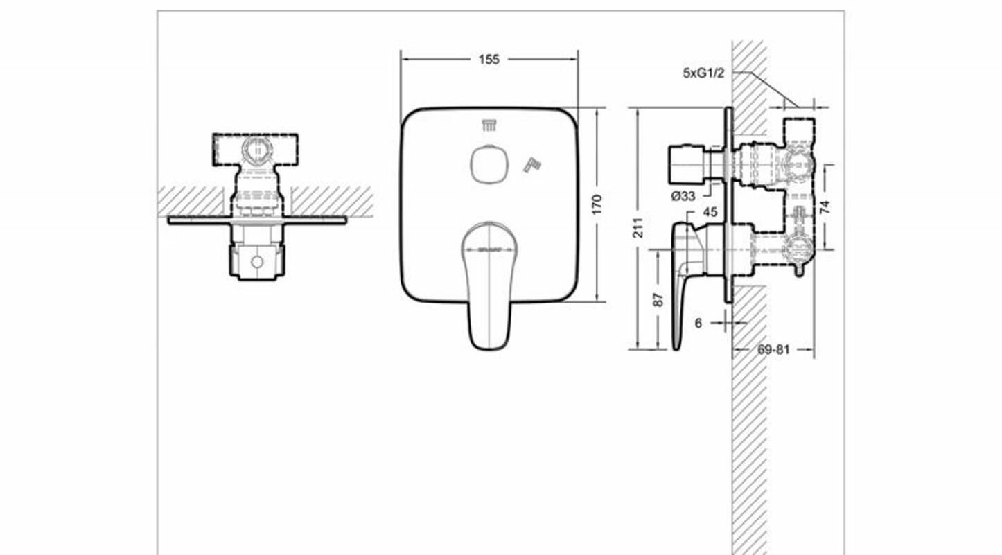 Bravat Встраиваемый смеситель 2-функц. (PB8173218CP-2-ENG)