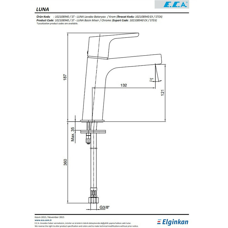 E.C.A. Смеситель E.C.A. Luna 102108940EX для раковины