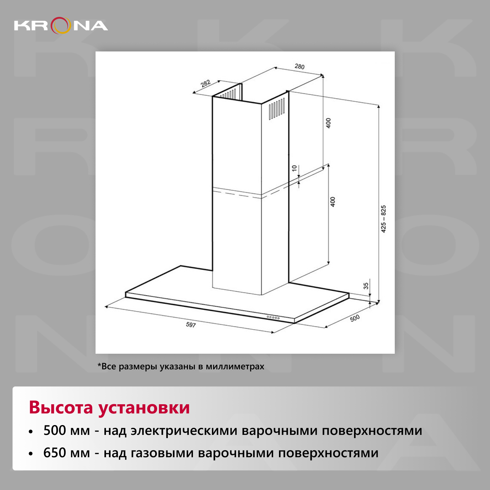 Каминная вытяжка KRONASTEEL RINA 600 inox PB