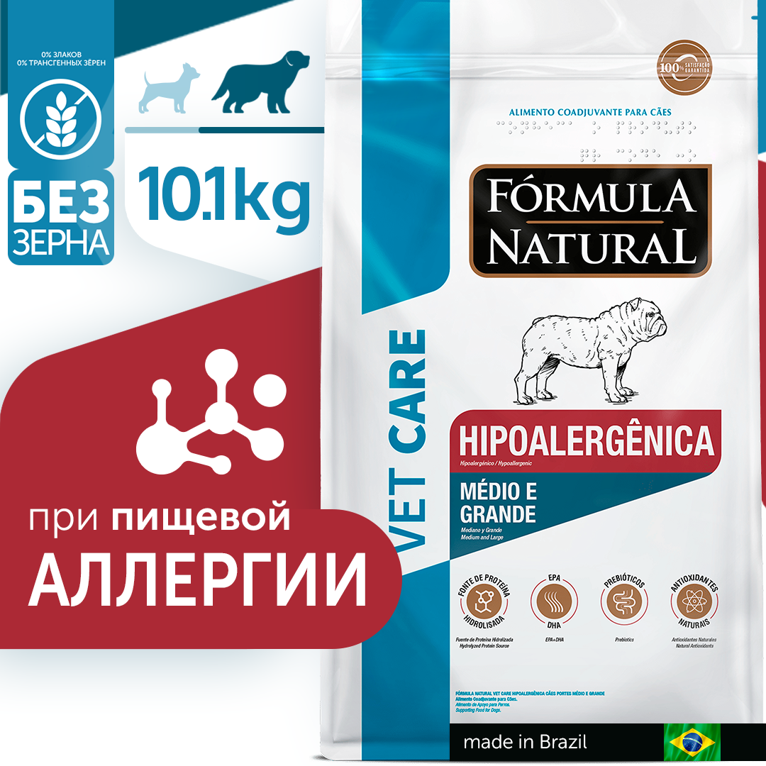 Купить Сухой ветеринарный беззерновой корм для собак средних и крупных пород, Formula Natural VET CARE HIPOALERGENIC - при пищевой аллергии, Бразилия, 10,1кг