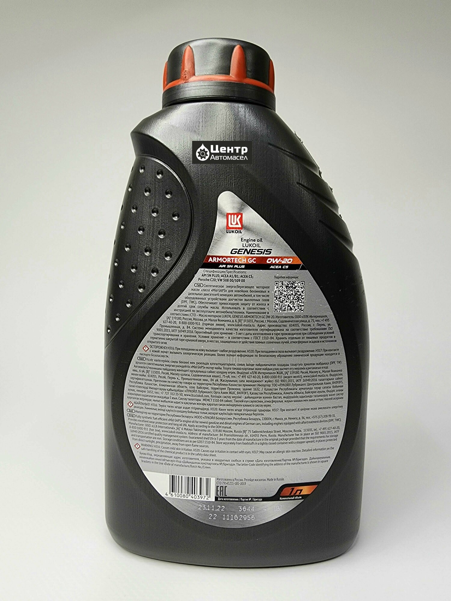 лукойл genesis armortech gc 0w-20 синт (1л) acea c5 vw 508 00/509 00 api sn plus porsche c20