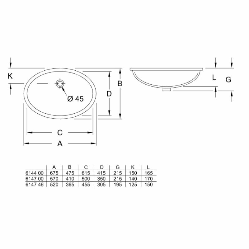 Раковина встраиваемая Villeroy & Boch Evana 50 см, 6147 00 01