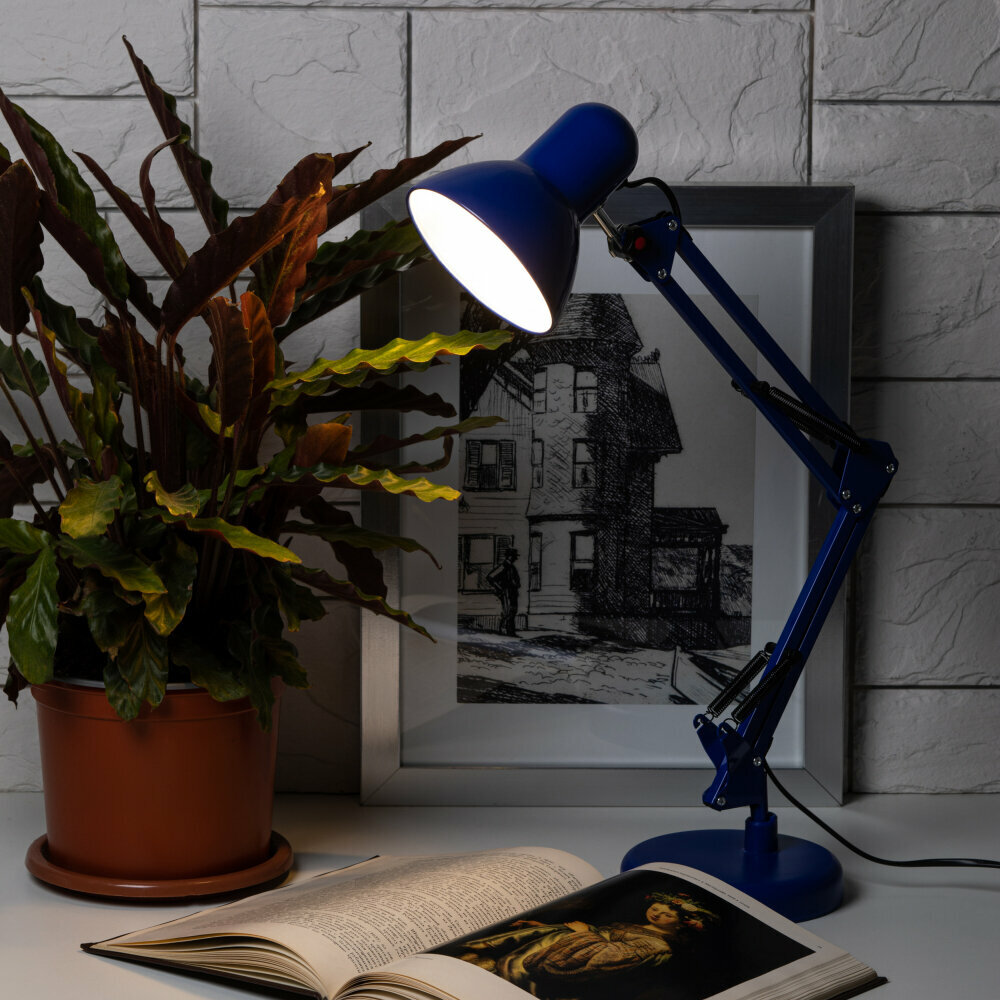СохранитьЛампа настольная Е27 офисная для чтения ЭРА N-214-E27-40W-LBU хай-тек, лофт, классика, синий интересное: