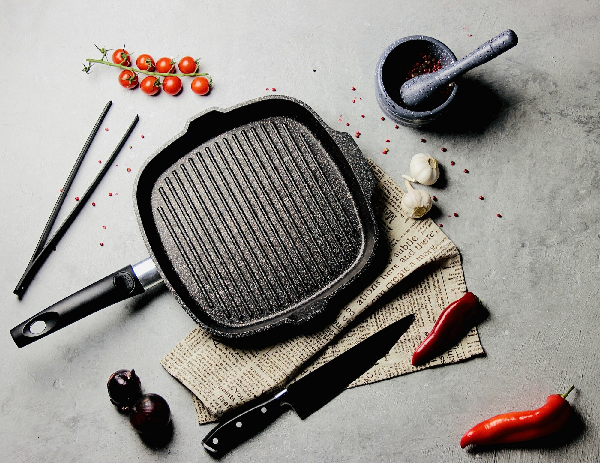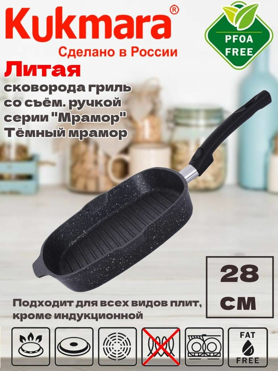 СохранитьСковорода-гриль антипригарная литая 28х28см со съёмной ручкой Темный мрамор ТМ KUKMARA интересное: