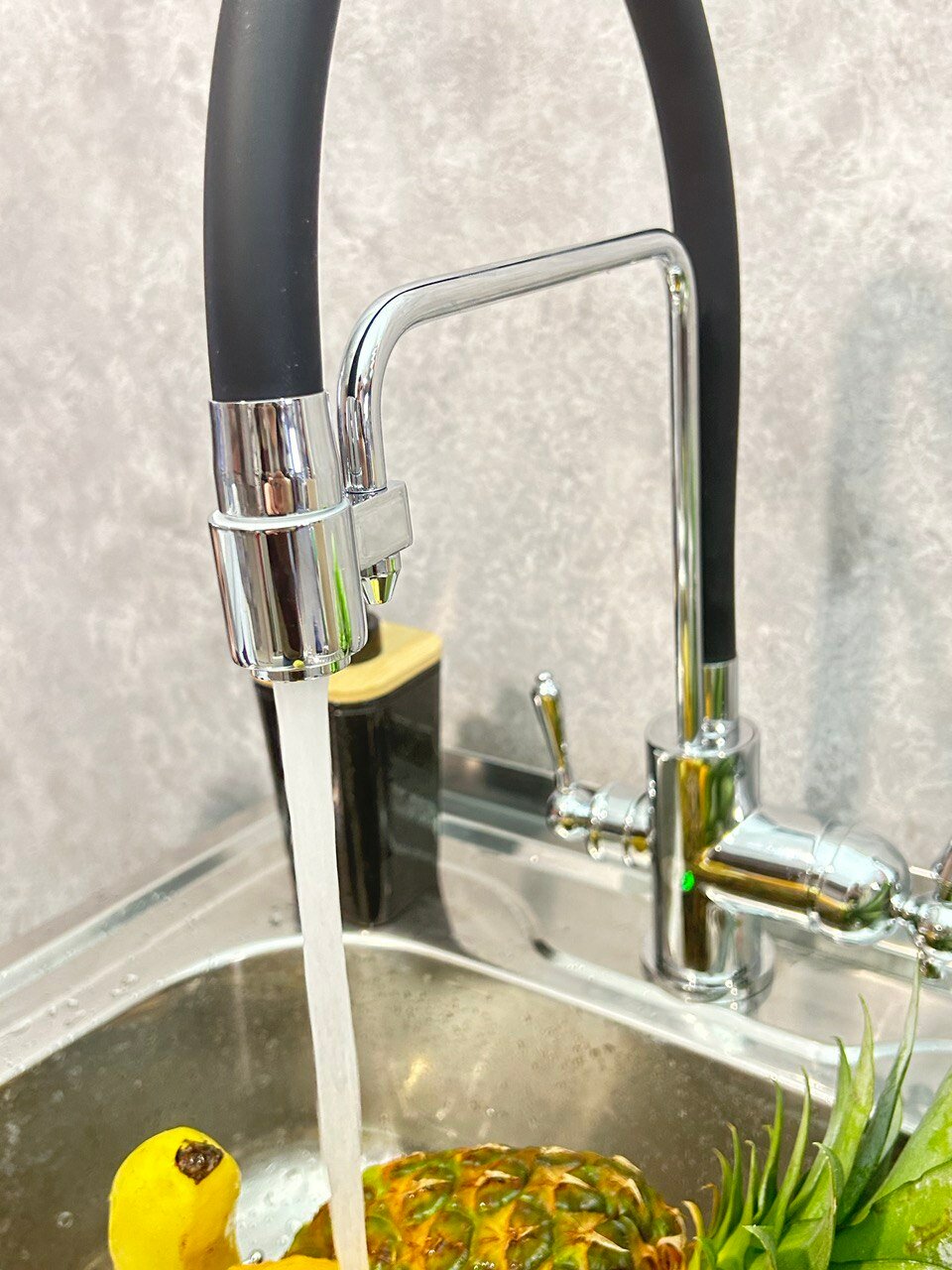 Смеситель для кухни GANZER GZ77025C с подключением к фильтру питьевой воды, хром-черный
