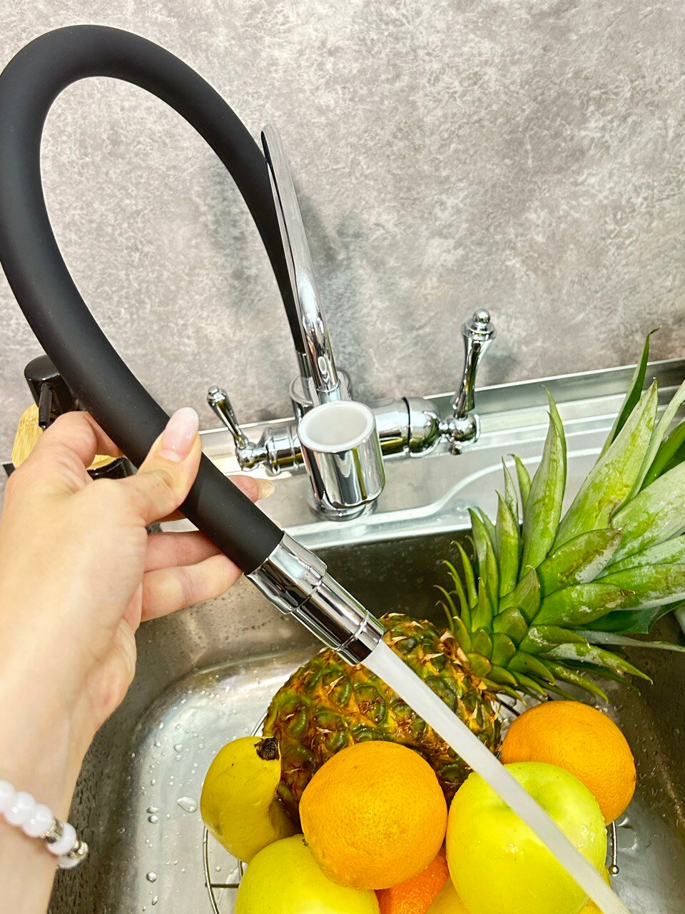 Смеситель для кухни Ganzer с гибким шлангом и подключением к фильтру с питьевой водой 77025C Черный
