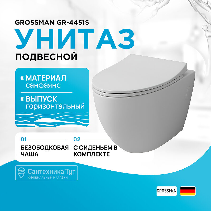 СохранитьУнитаз подвесной Grossman GR-4451S безободковый, с сиденьем микролифт, белый интересное:
