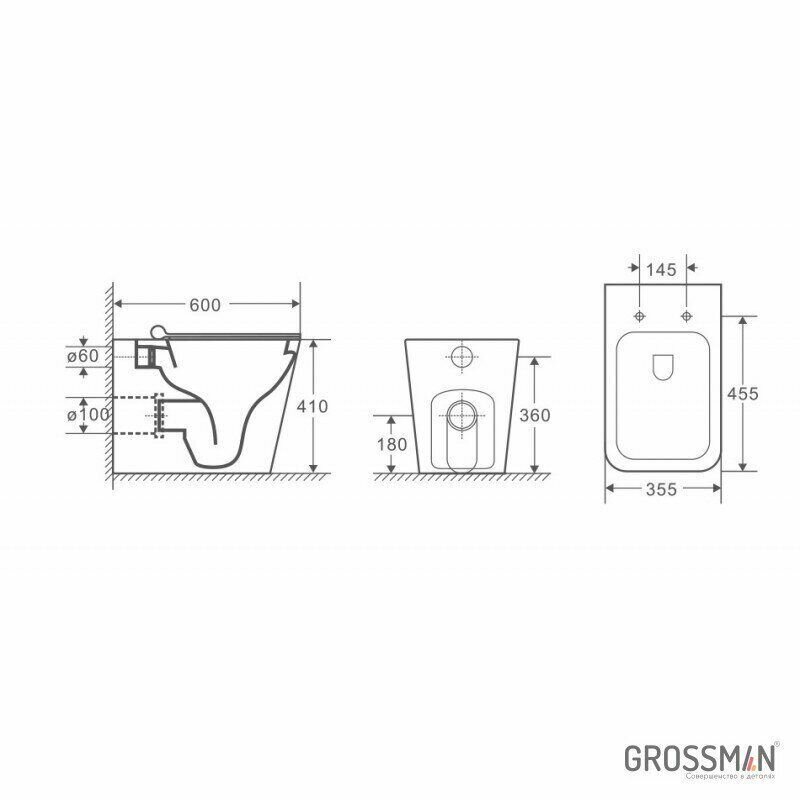 Унитаз безободковый Grossman GR-4414S 600x355x410 подвесной с тонкой крышкой