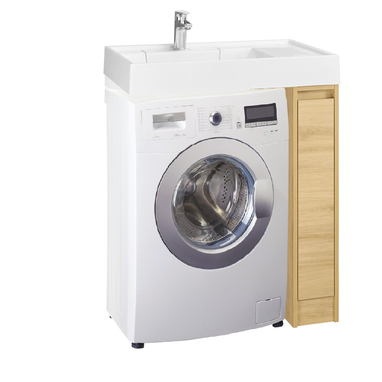 Тумба с раковиной для ванной комнаты под стиральную машину AQUATON 1A2361V0LH010 Лондри 20 белый, раковина Рейн 80