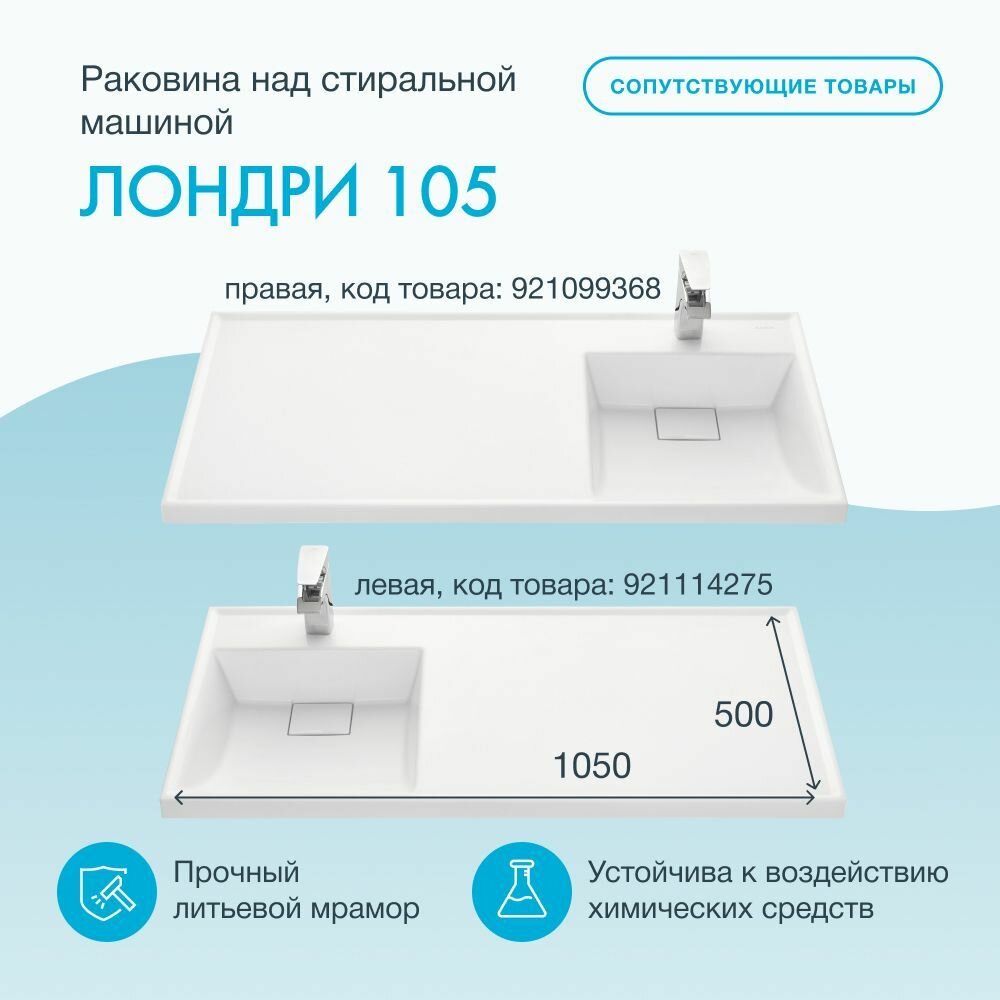 Тумба с раковиной для ванной комнаты под стиральную машину AQUATON 1A2361V0LH010 Лондри 20 белый, раковина Рейн 80