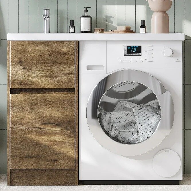 Тумба с раковиной для ванной комнаты под стиральную машину AQUATON 1A2361V0LH010 Лондри 20 белый, раковина Рейн 80