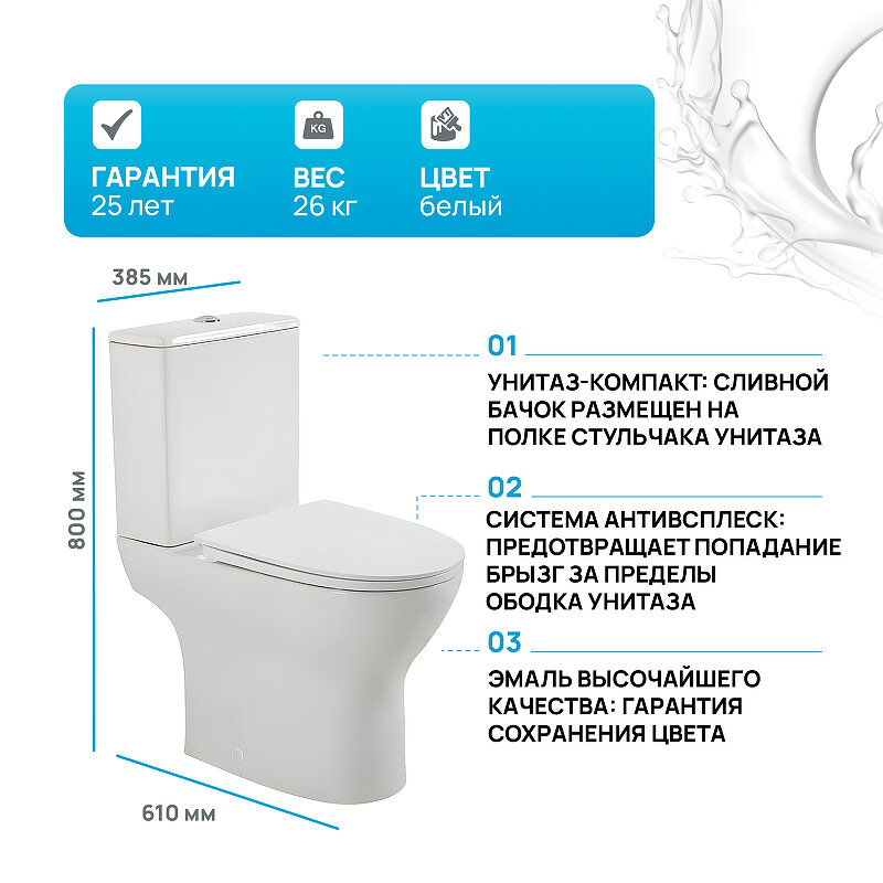 Унитаз компакт Vincea Evo VT2B-34 без бачка с сиденьем Микролифт