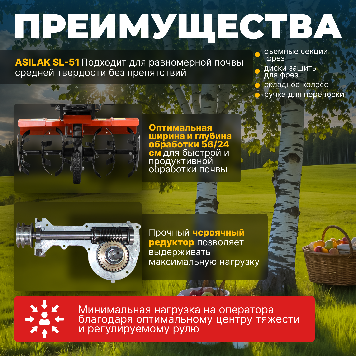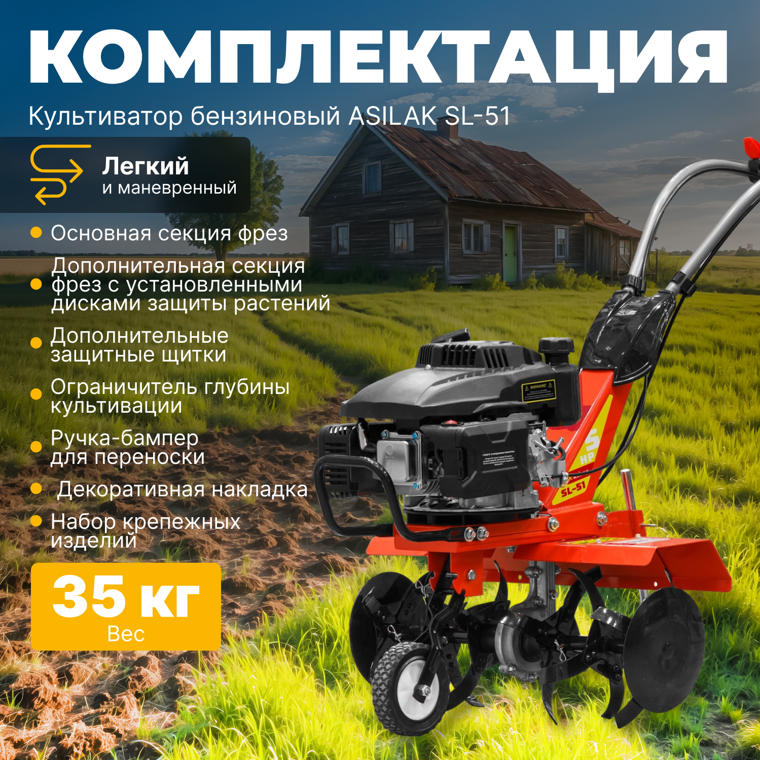 Культиватор бензиновый ASILAK SL-51 (5 л.с., ширина обработки 56 см, 1 передача) (SL-51) интересное: