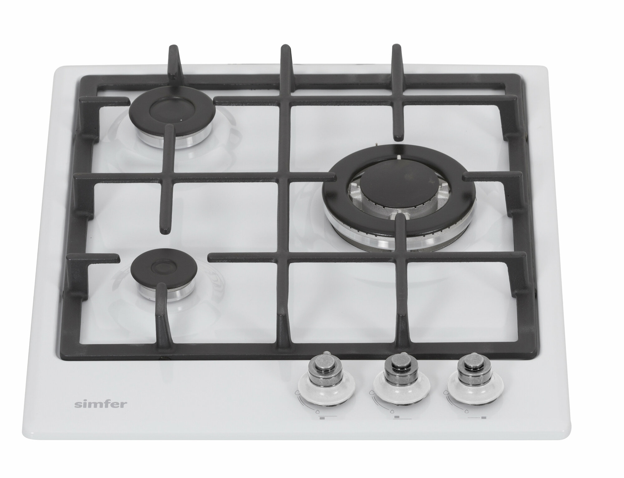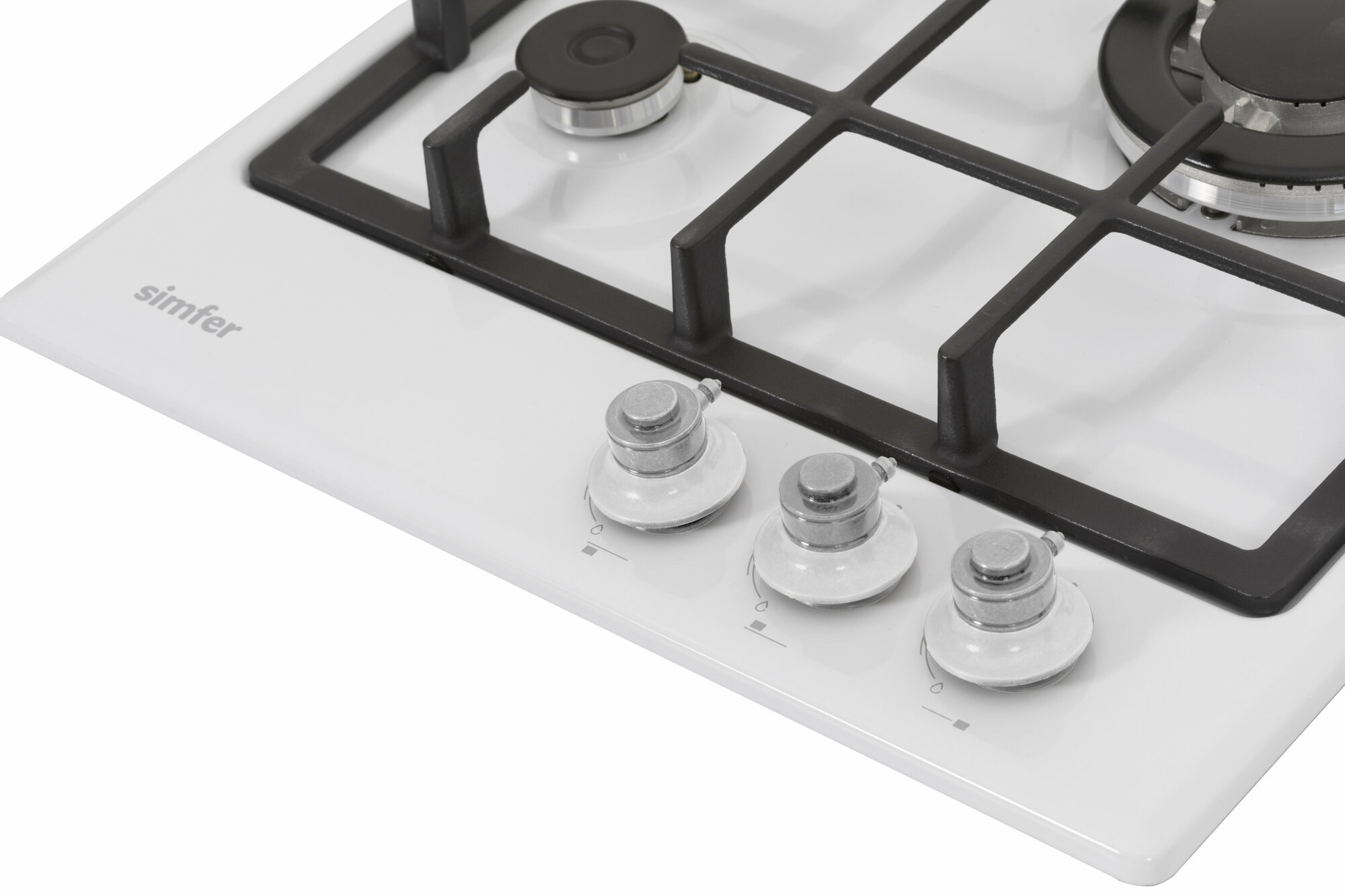 Встраиваемая газовая варочная панель Simfer H45V35W527, белая, 45 см, WOK конфорка, газ-контроль