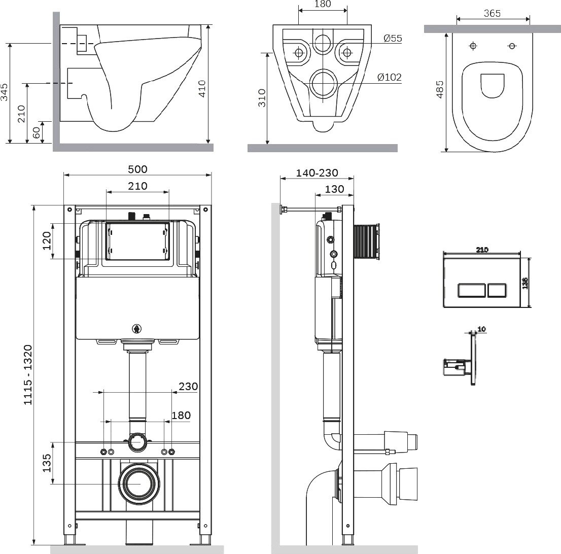Комплект унитаза с инсталляцией AM.PM Spirit V2.0 FlashClean IS47001.701700 с сиденьем Микролифт и Белой клавишей смыва.