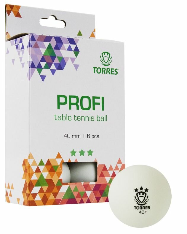 Мяч Torres "Profi", для настольного тенниса, 3 звезды, диаметр 40 мм, набор 6 штук, цвет белый