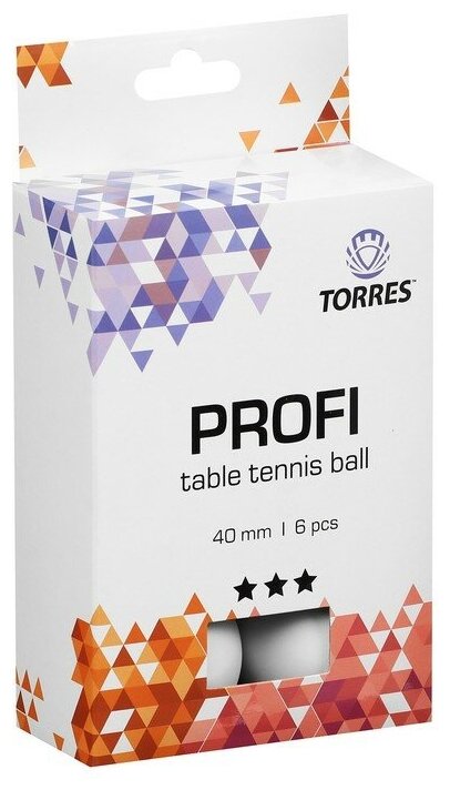 TORRES Мяч для настольного тенниса Torres Profi, 3 звезды,40 мм, набор 6 шт., цвет белый