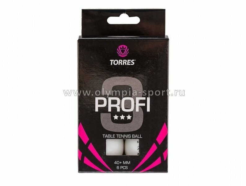 Купить Мяч для настольного тенниса TORRES Profi 3*, TT21012, диам. 40+мм, 6 шт, белый