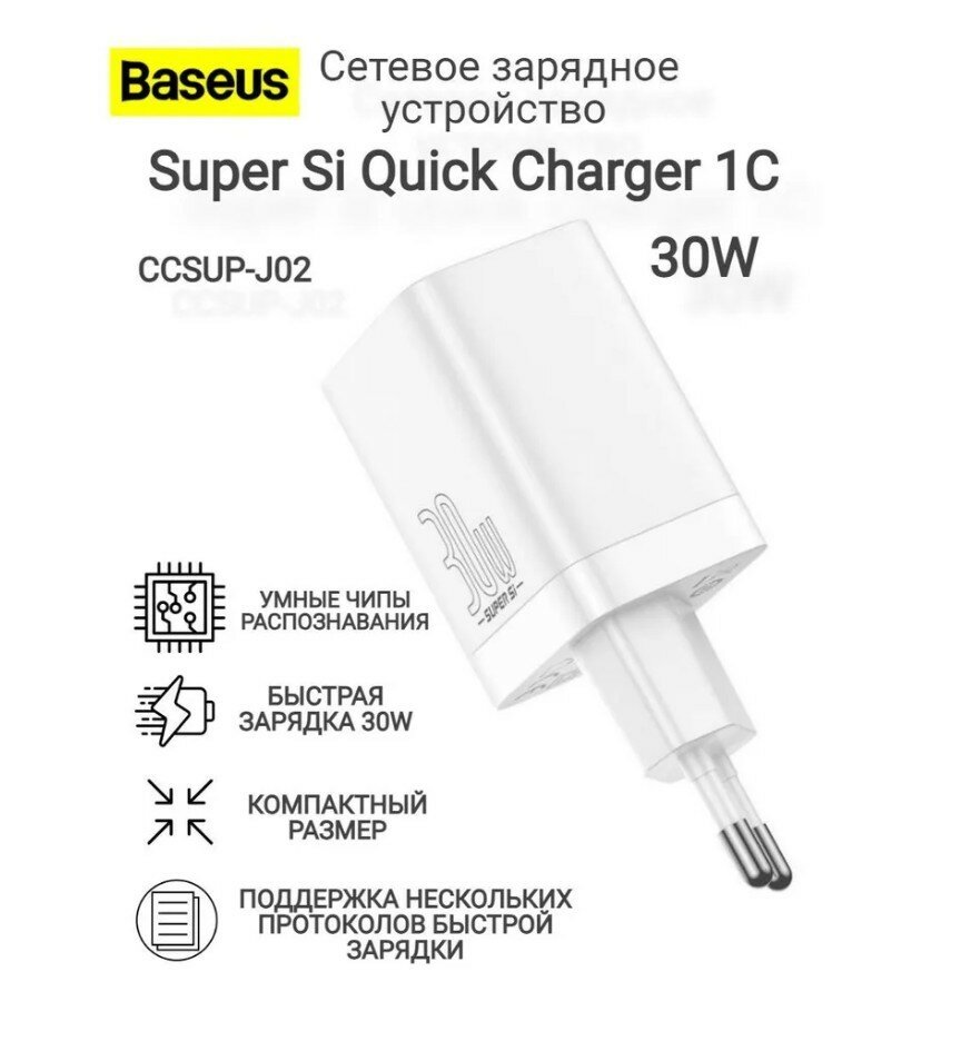 Зарядное устройство Baseus Super Si Quick Charger Type-C 30W EU, белое (CCSUP-J02)