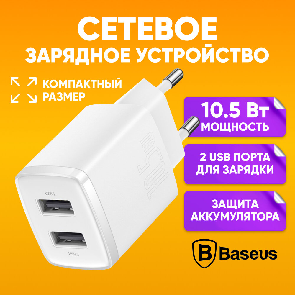 Зарядное устройство BASEUS Compact Charger 2U 2USB, 2.1A, 10.5W, белый (CCXJ010202)