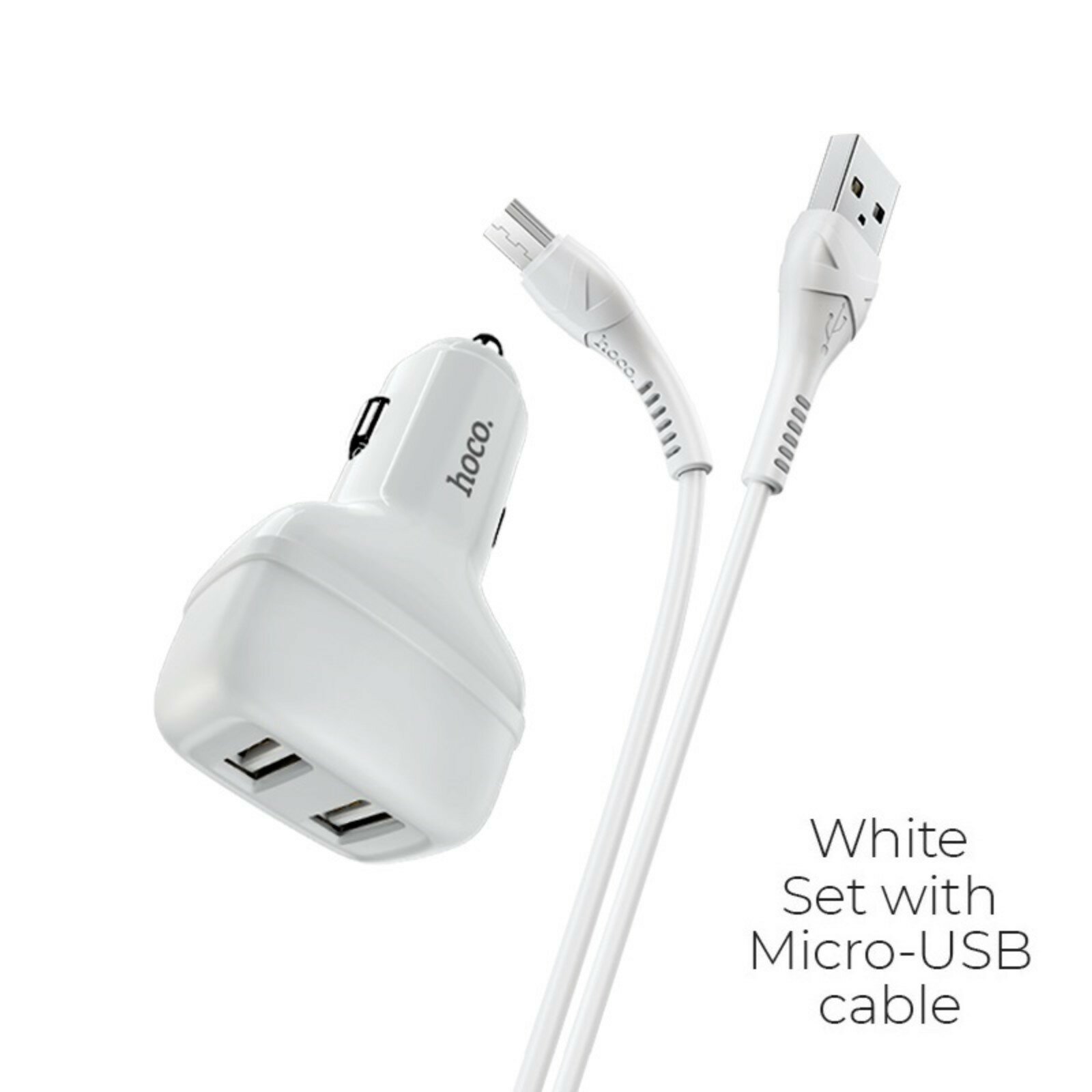 Автомобильное ЗУ USB Hoco Z36 + кабель Micro USB (2USB/2.4A) белый