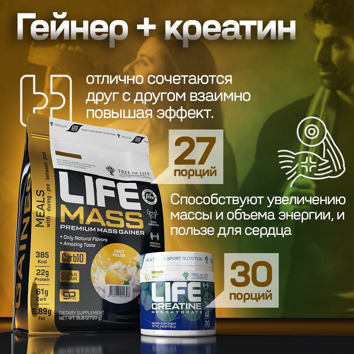 Купить Гейнер Tree of life 6LB Дыня + Креатин моногидрат 150 грамм / Комплекс спортивного питания для набора мышц