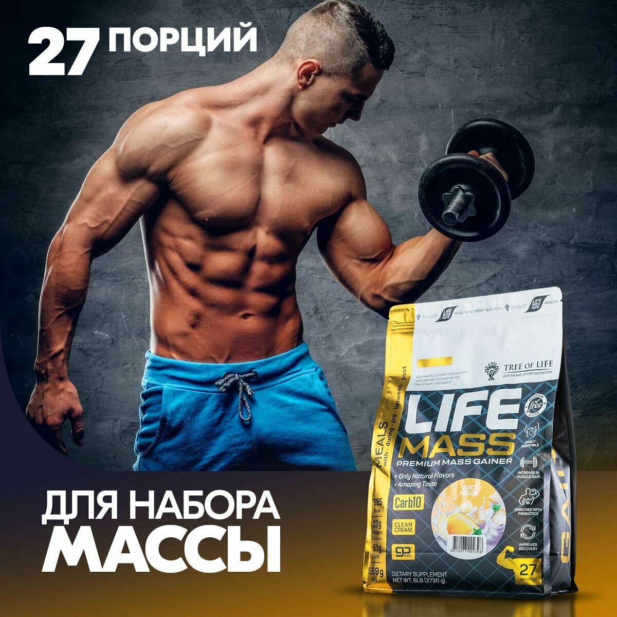 Life Mass Gainer 2730 gr, 27 порции(й), дыня