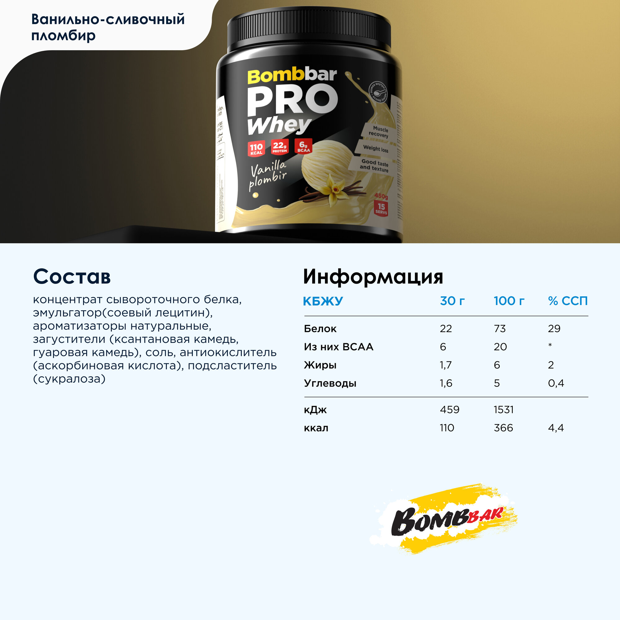 Сывороточный протеин Bombbar Whey Protein Pro 450 г, Ванильно-сливочный пломбир