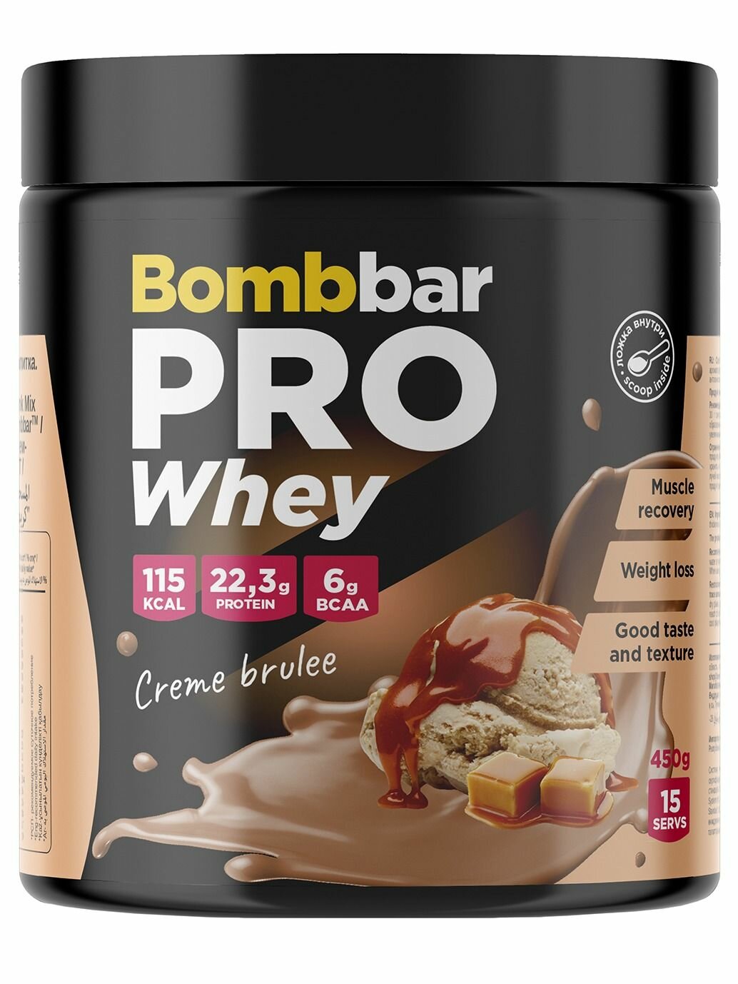 Bombbar Pro Whey Protein Протеиновый коктейль без сахара "Крем-брюле", 450 г