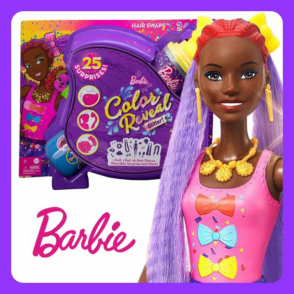 Кукла Барби - Color Reveal Блеск, фиолетовая (Barbie Color Reveal Bows Hair Change Doll)