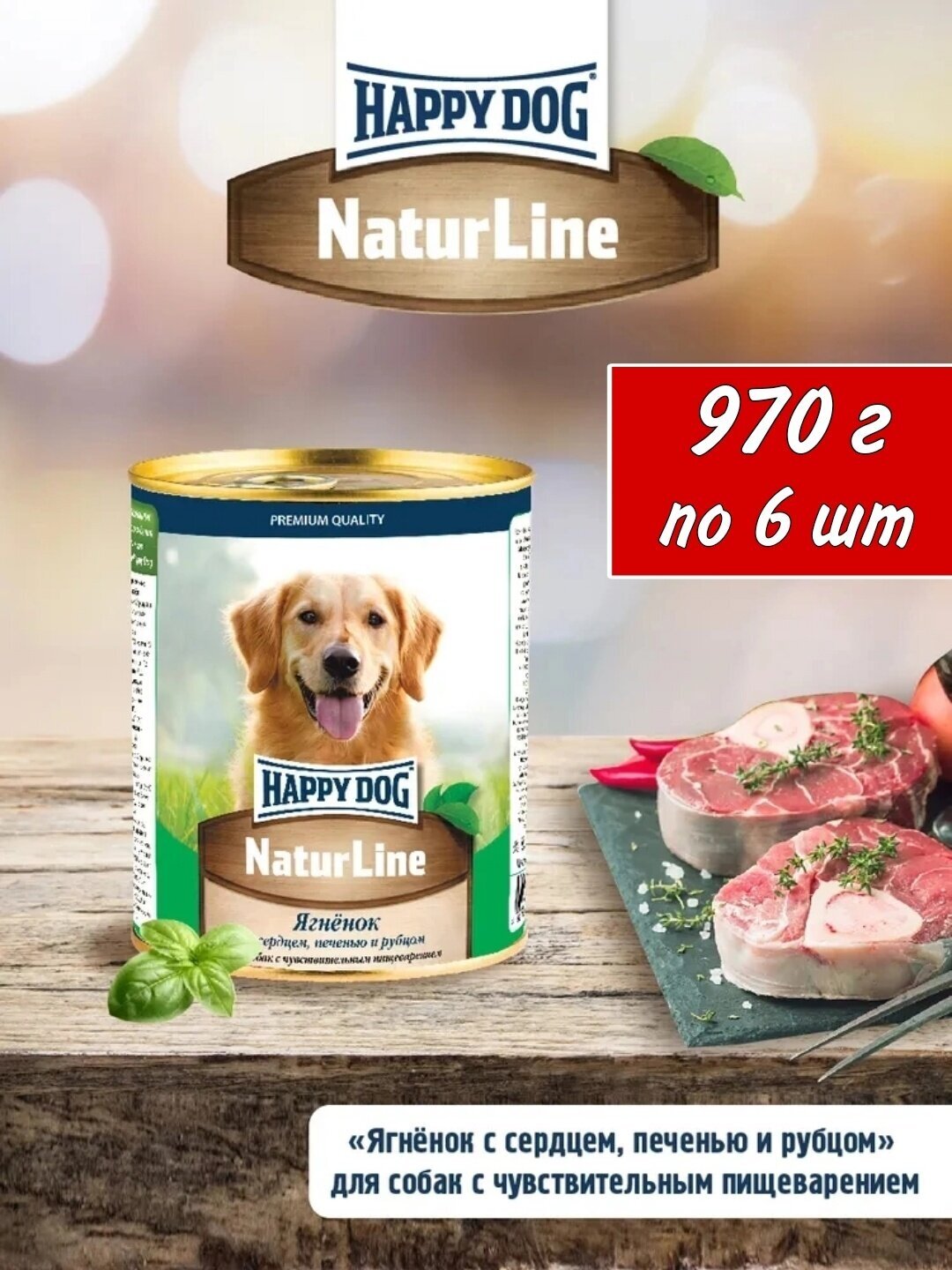 Купить Консервы для собак Happy Dog Natur Line Ягненок с сердцем, печенью и рубцом (970гр х 6шт)