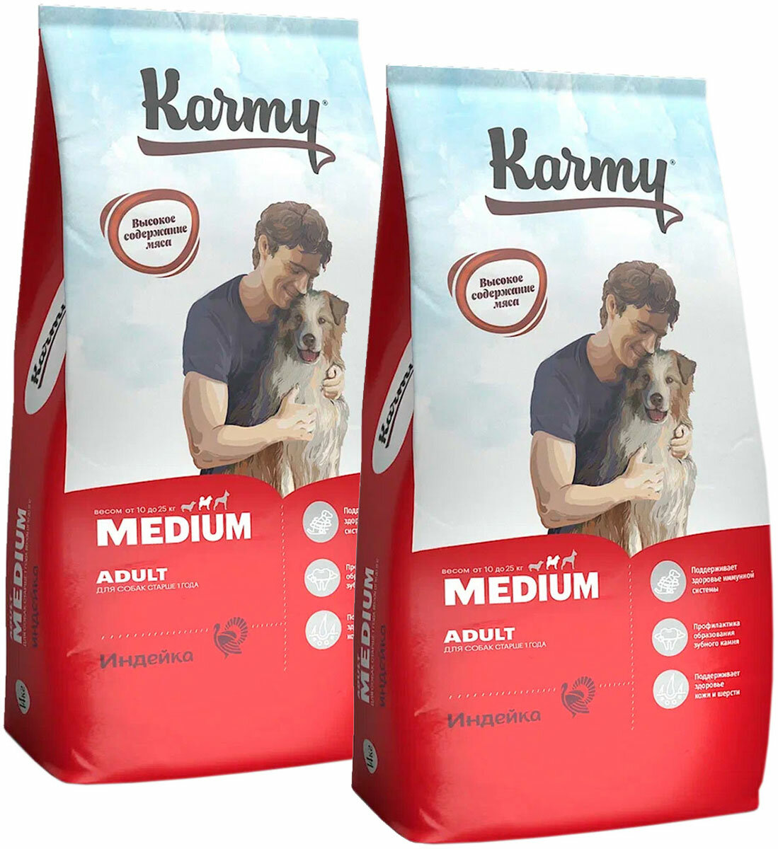 Купить KARMY MEDIUM ADULT для взрослых собак средних пород с индейкой 14 + 14 кг