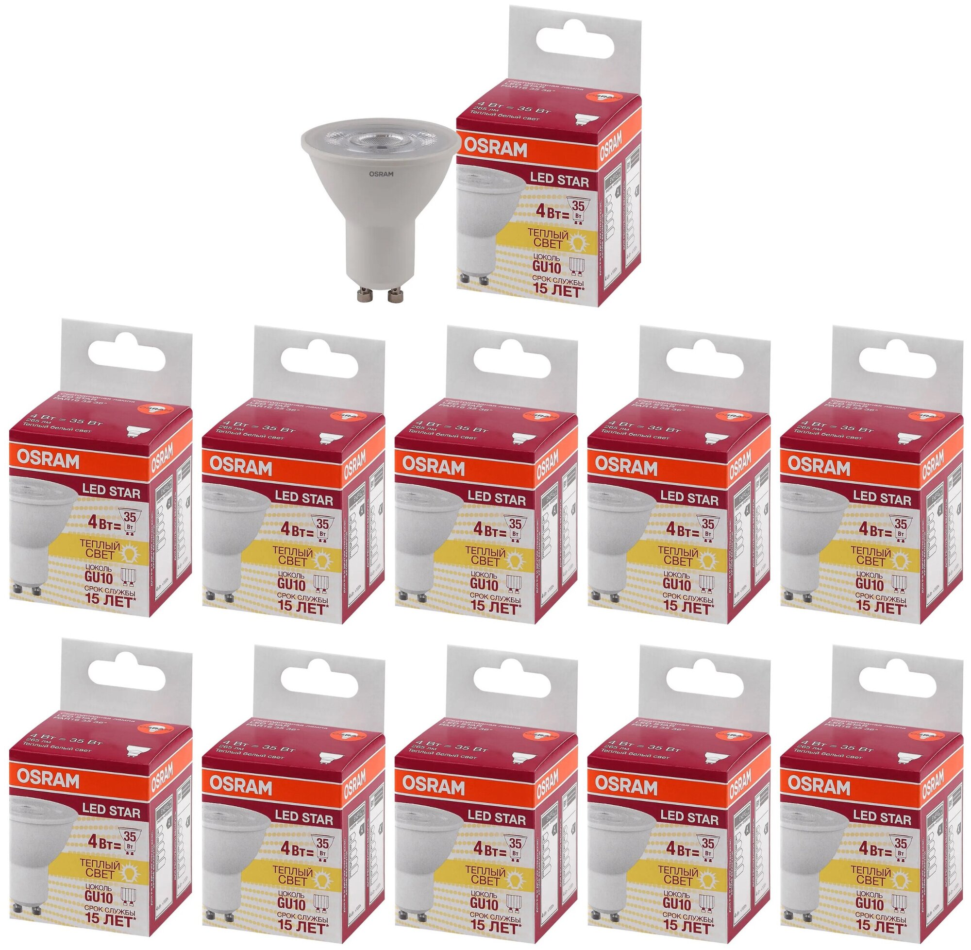 Лампочка светодиодная OSRAM Софит PAR16 GU10 4Вт 220В 265Лм 3000К Теплый белый, упаковка 10шт