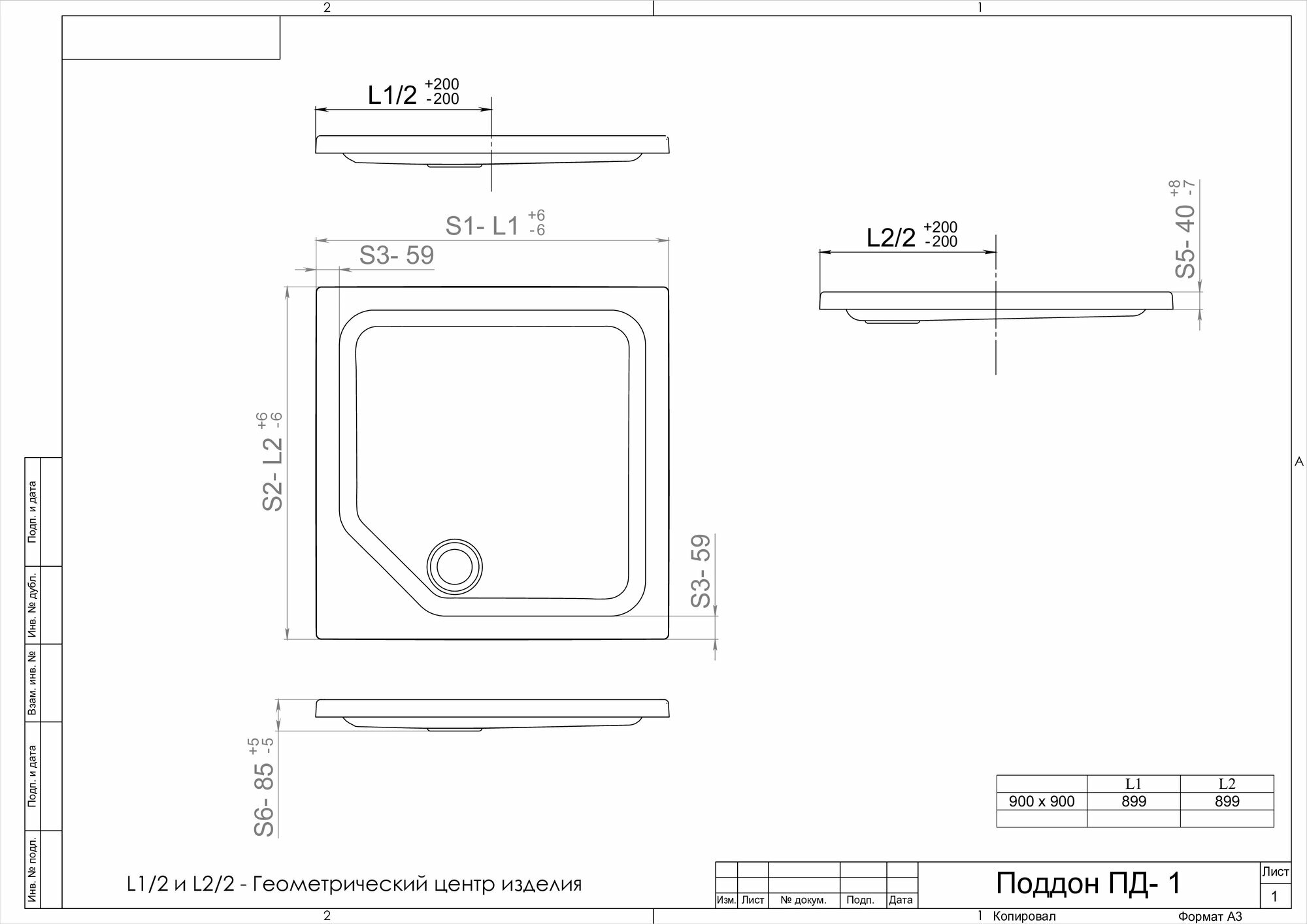 Душевой поддон Triton (90х90) квадратный, низкий, каркас ПД1