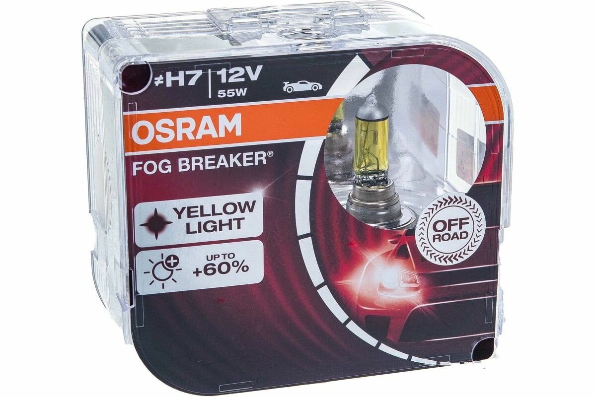 Комплект ламп OSRAM FOG BREAKER Н7, Комплект - 2 шт. (желтые) OS62210FBRDUOBOX