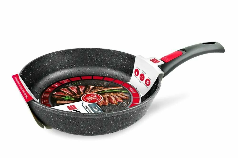 Сковорода для индукционной плиты 24 см со съемной ручкой Нева Металл Посуда гранит L18024i, без крышки, литая, с толстым дном и с антипригарным покрытием