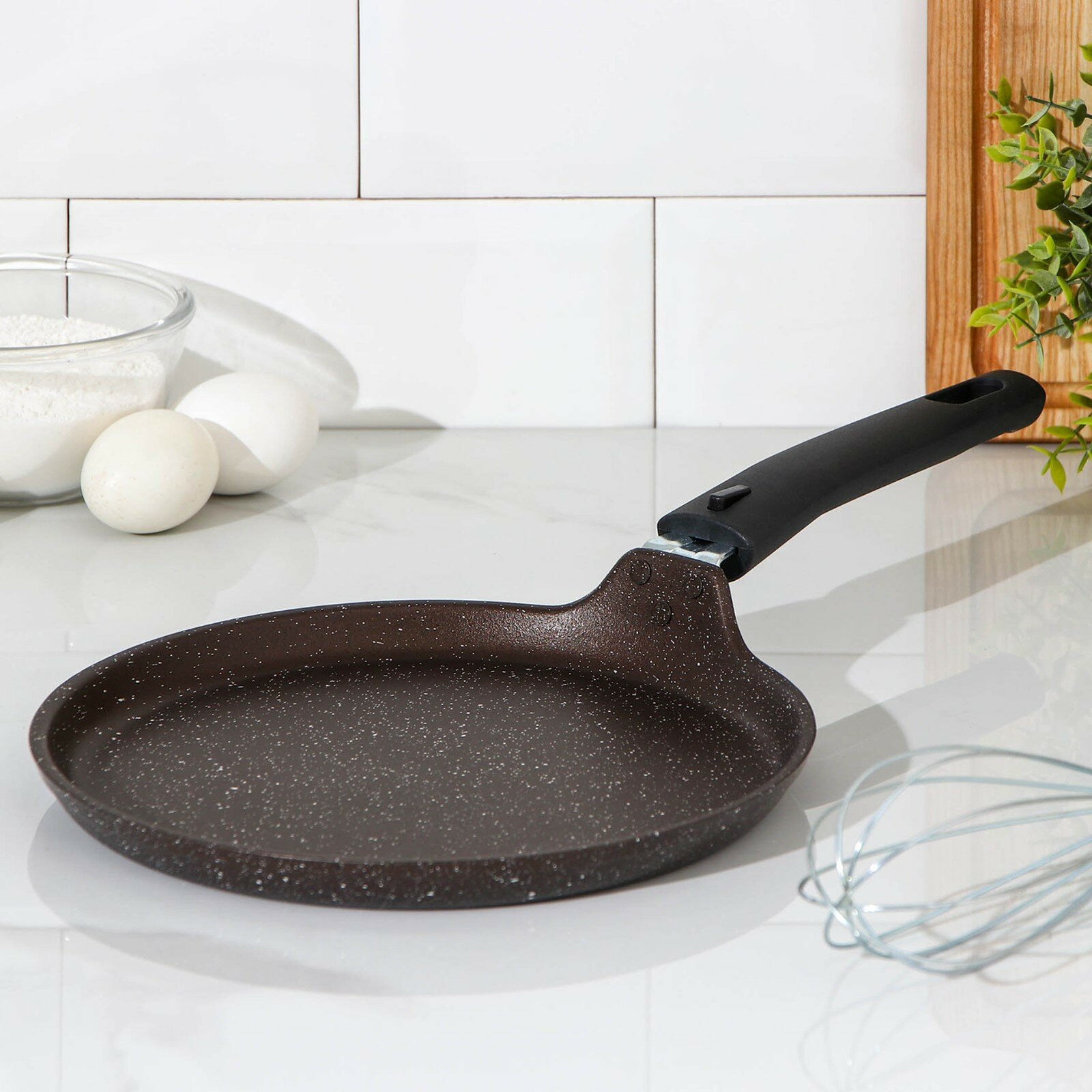 Сковорода блинная 22 см с антипригарным покрытием (фисташковый мрамор) со съёмной ручкой