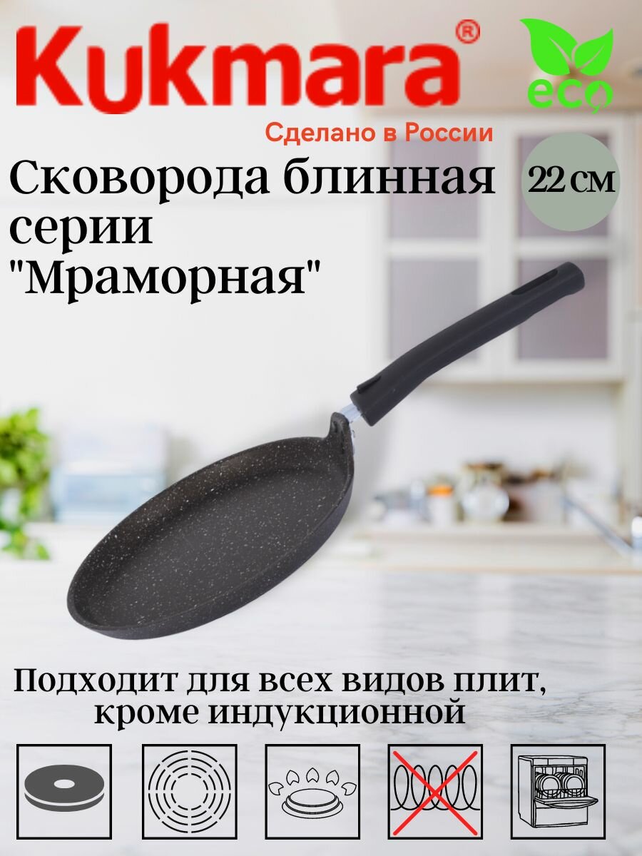Сковорода блинная KUKMARA Мраморная 22 см., арт. сбмф220-1а