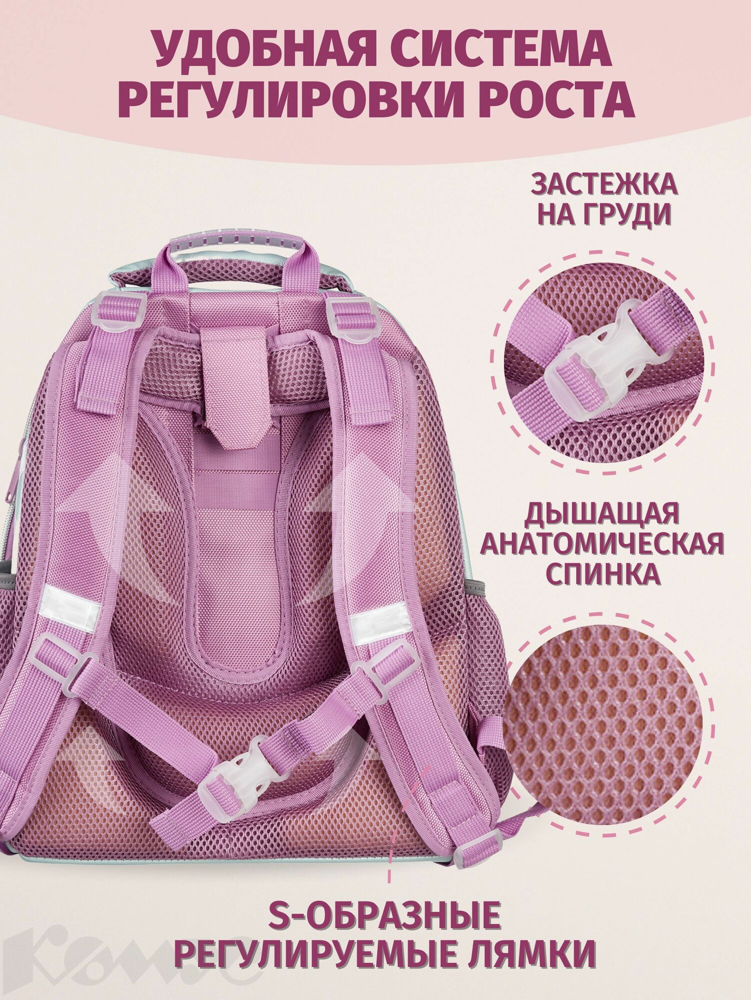 Рюкзак школьный Комус Класс Straight Lovely, портфель анатомический для девочки, 2 отделения, 5 карманов