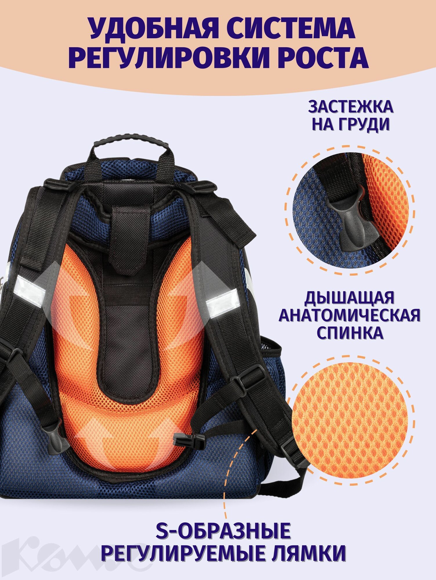 Ранец школьный Комус Класс Воздушный шар, анатомический, 2 отделения, 4 кармана