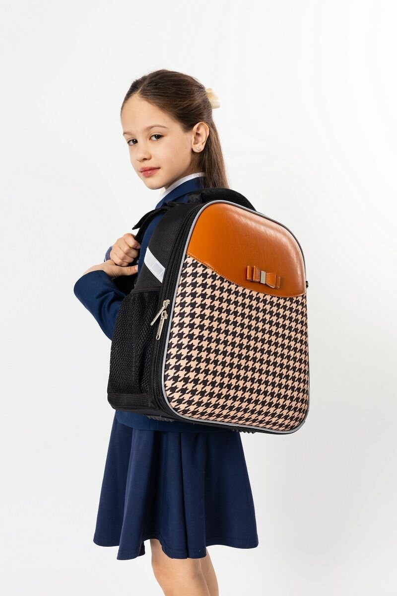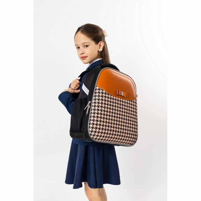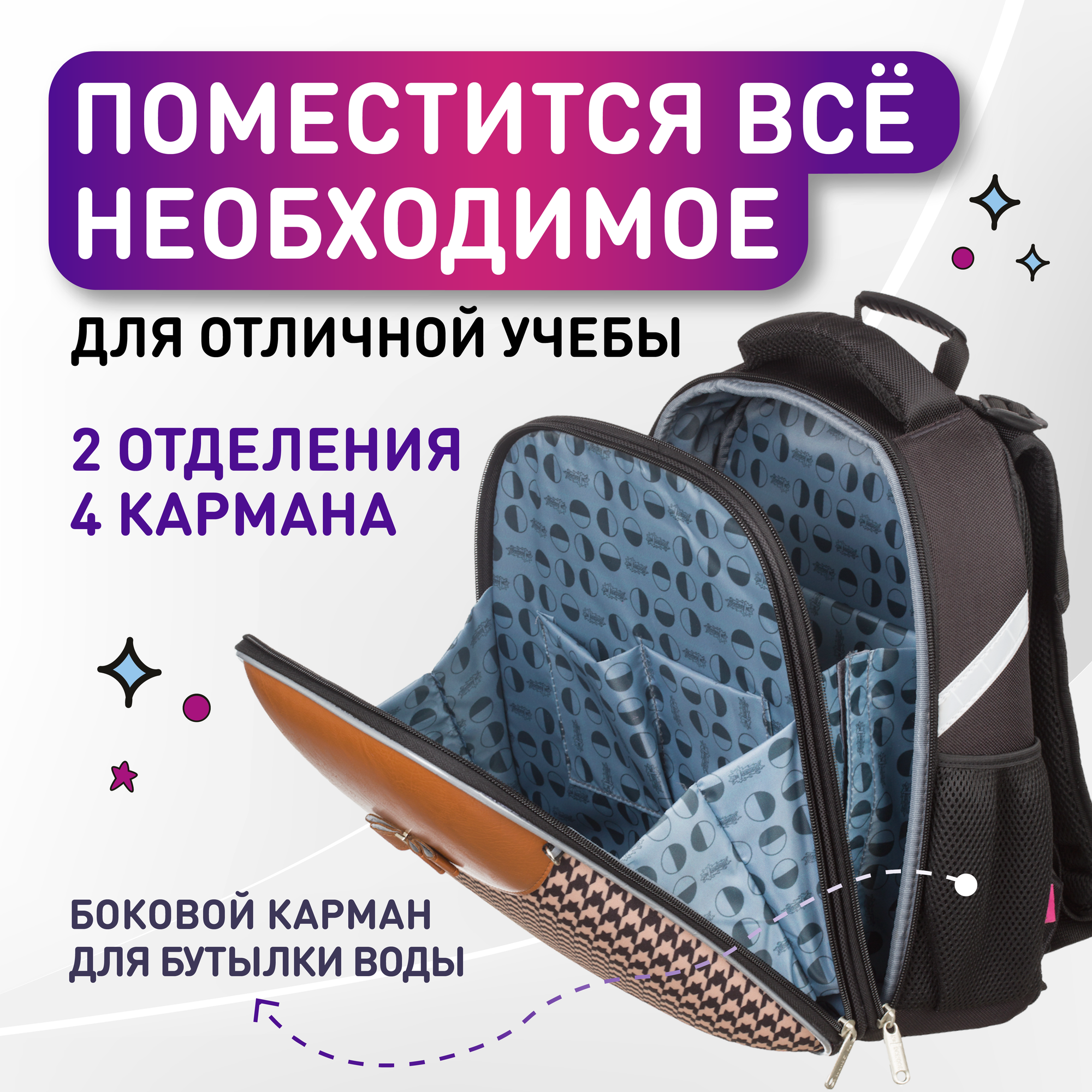 Ранец школьный (рюкзак) №1 School Basic Fashion бежево-черный, 2 отделения, эргономическая спинка