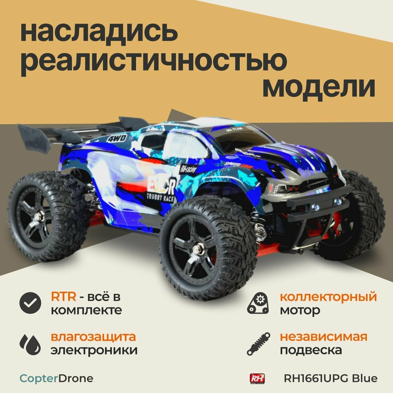 Радиоуправляемый трагги Remo Hobby S-EVOR 4WD RTR масштаб 1:16 2.4G - RH1661UPG-BLUE