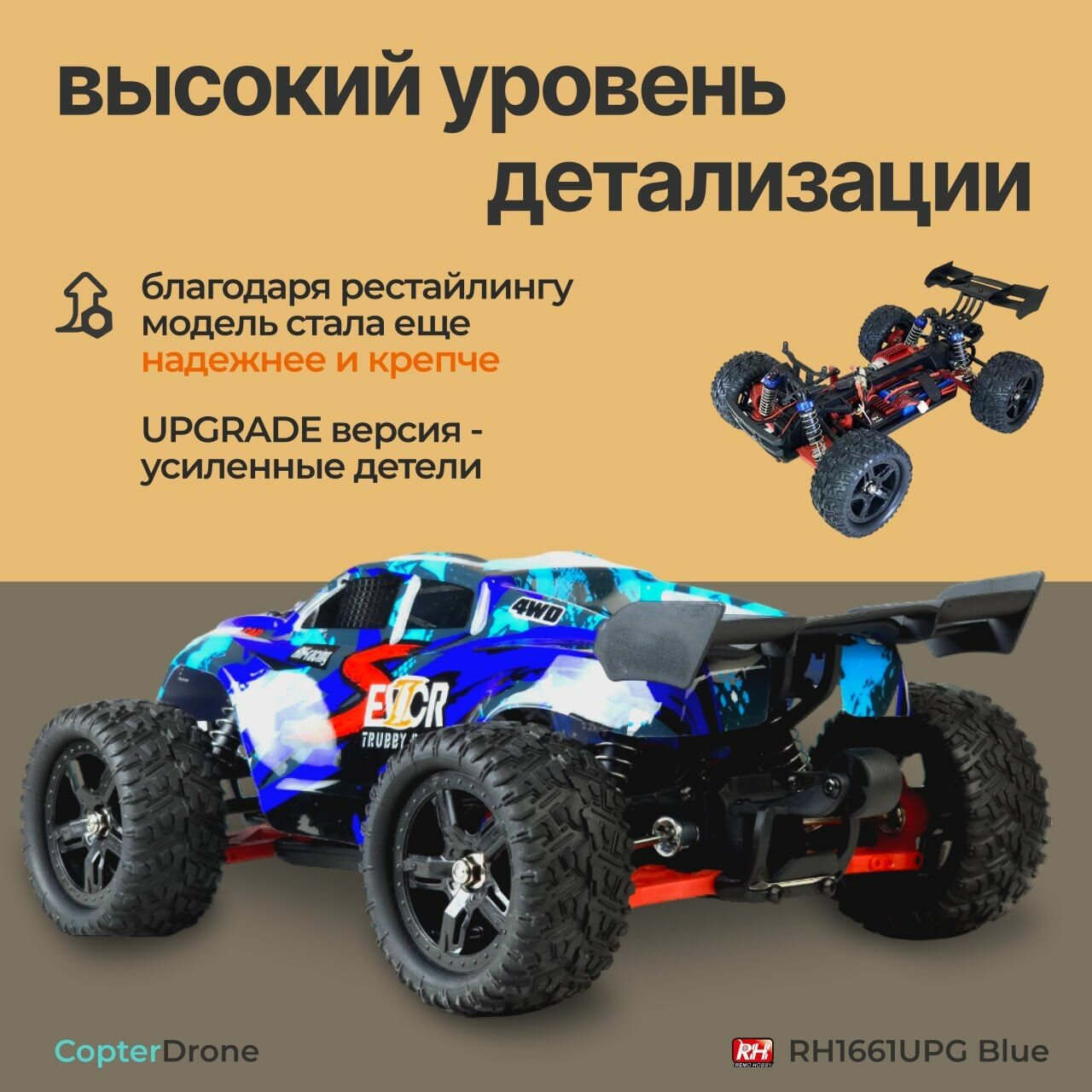 Радиоуправляемая трагги Remo Hobby S EVO-R UPGRADE 4WD 2.4G 1/16 RTR-RH1661UPG - Синий