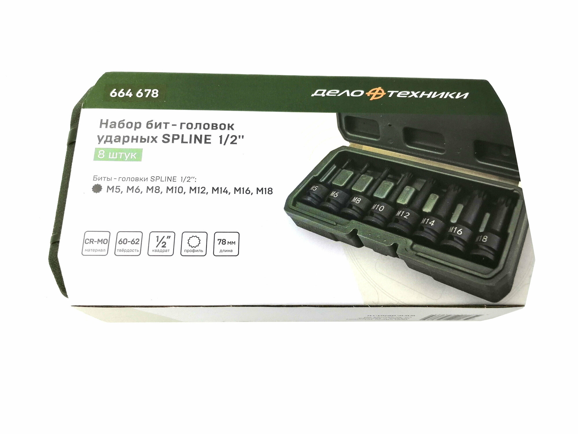664678 Набор бит—головок ударных 1/2'' Spline, 8шт. Дело Техники