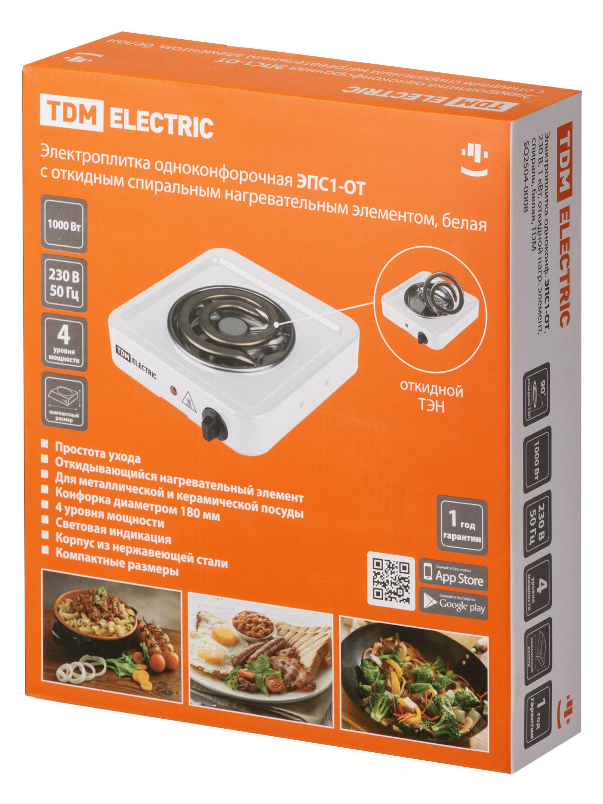 Электроплитка одноконфорочная , ЭПС1, 230 В, 1 кВт, спираль, черная, TDM SQ2504-0012 (1 шт.)