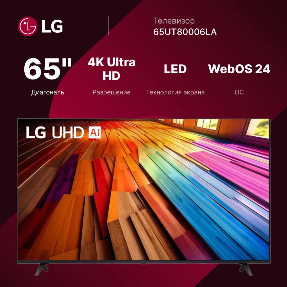 Телевизор 65" LG 65UT80006LA. ARUG 2024 (4K UHD 3840x2160, Smart TV) черный (EAC)