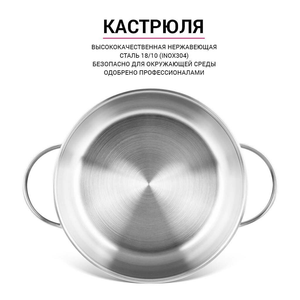 FISSMAN Набор посуды 8 пр. из нержавеющей стали Gabriela (Ковш -1,1л; Кастрюли: 1,5л / 3л / 5,2л)