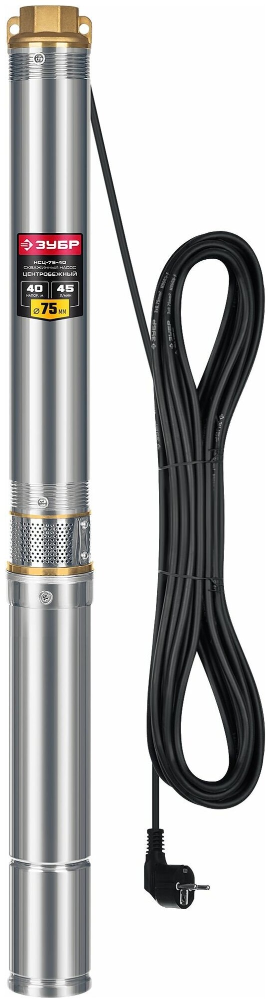 ЗУБР 550 Вт, 40 м напор, скважинный центробежный насос, корпус из нержавеющей стали (НСЦ-75-40)