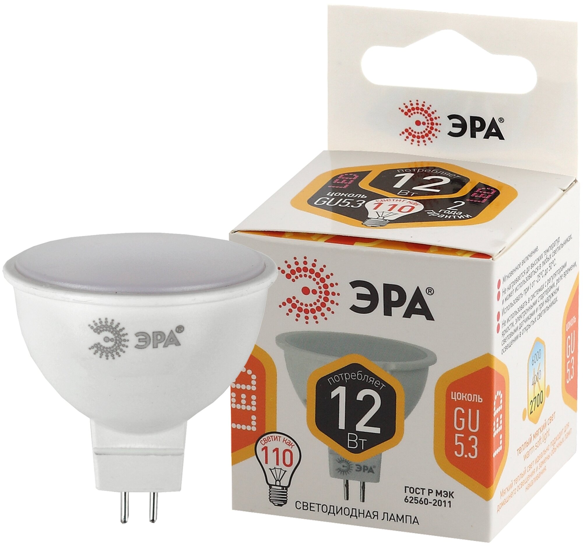 Купить Лампочка светодиодная ЭРА LED MR16-12W-827-GU5.3 2700K софит 12 Вт