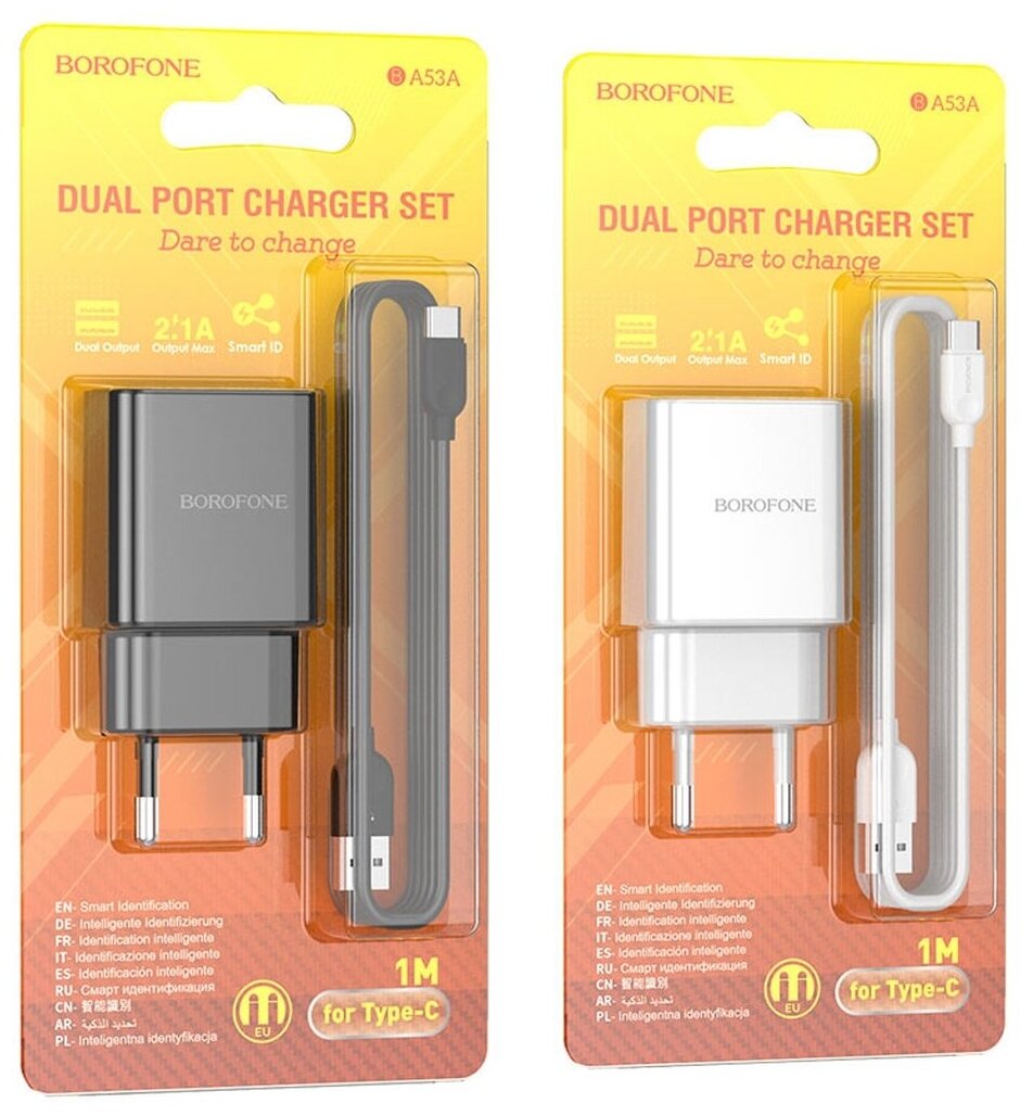 Купить Сетевое ЗУ BOROFONE BA53A, 2хUSB-А, 2.1А + кабель (AM-Type-C), 1 м, белый